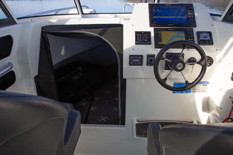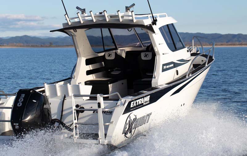 The Extreme 795 Walk Around is a multi-award winning fishing beast with the ability to easily walk around to the bow / front deck while having the comfort and cover of a hardtop cabin. The walkaround setup allows for a versatile fishing experience, especially for lure fisherman that likes to fight big fish from the front casting deck. Matched with a Minn Kota, you get a centre console like experience with comfort and cover of a hardtop cabin. And due to Extreme's wide waterline beam, the cabin is spacious with plenty of room to move about and store your gear. All this with the awesome build quality that you would expect from Extreme, you have a leading class fishing boat that's hard to beat.